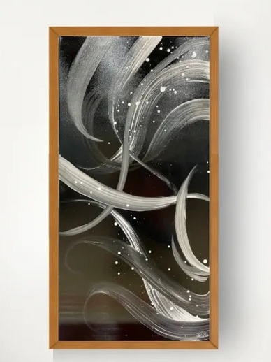 There's a reason why Black and White is considered a timeless, classic combination. B&W is very much so an "in the beginning" kind of dynamic duo. You don't know what lies in a dark room until the light hits it. Fill your void space with this simple, yet inviting combo. It will be good. 24x48" - 400 USD